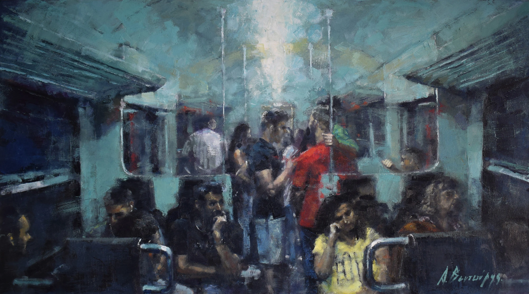 Τραίνα στην Καλαμάτα | Trains in Kalamata 90 x 50 cm Λάδι σε καμβά | Oil on canvas 2024